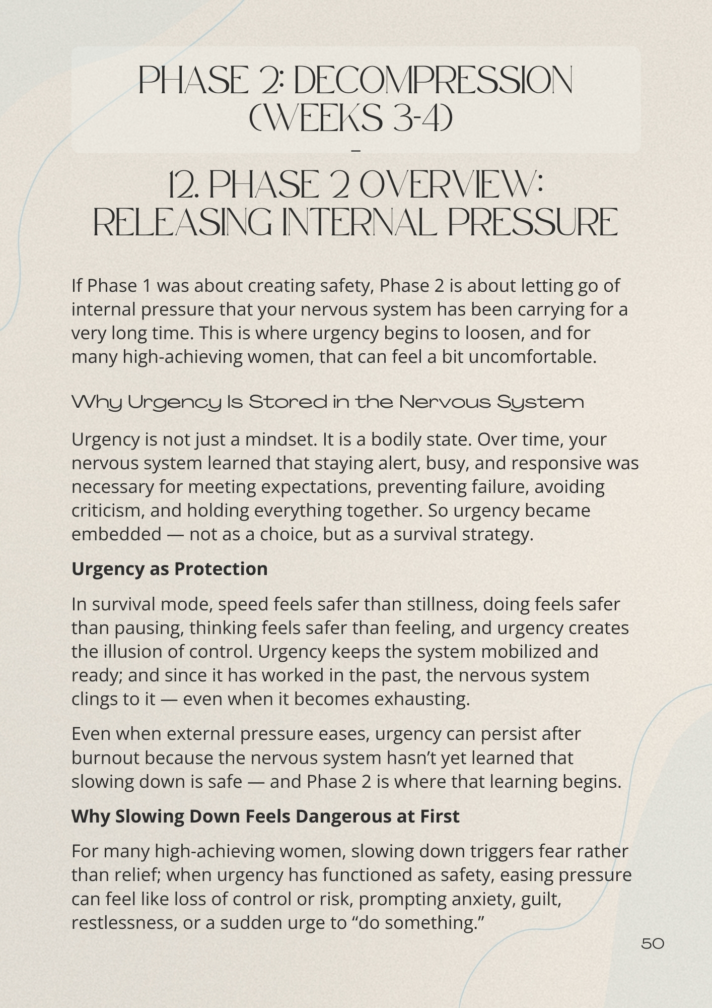 A nervous-system-first, identity-safe recovery system designed specifically for high-achieving women who don’t want to burn their lives down to feel better.